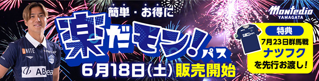 モンテディオ山形では、ファンクラブ会員のお客様を対象に夏のホームゲーム5試合(期間:7月10日~9月2日)の観戦チケットを簡単に、お得に購入できる『楽だモン!パス』を下記の通り販売します。