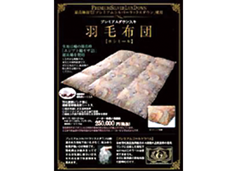 贈呈品:アサギ株式会社製 最高級羽毛布団シングルサイズ ペア(総額500,000円相当)