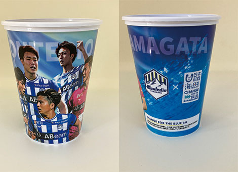 ブルーキッチン各店舗にてドリンクをご購入のお客さまへ、海と日本プロジェクト×モンテディオ山形オリジナルリユースカップをお渡しします。