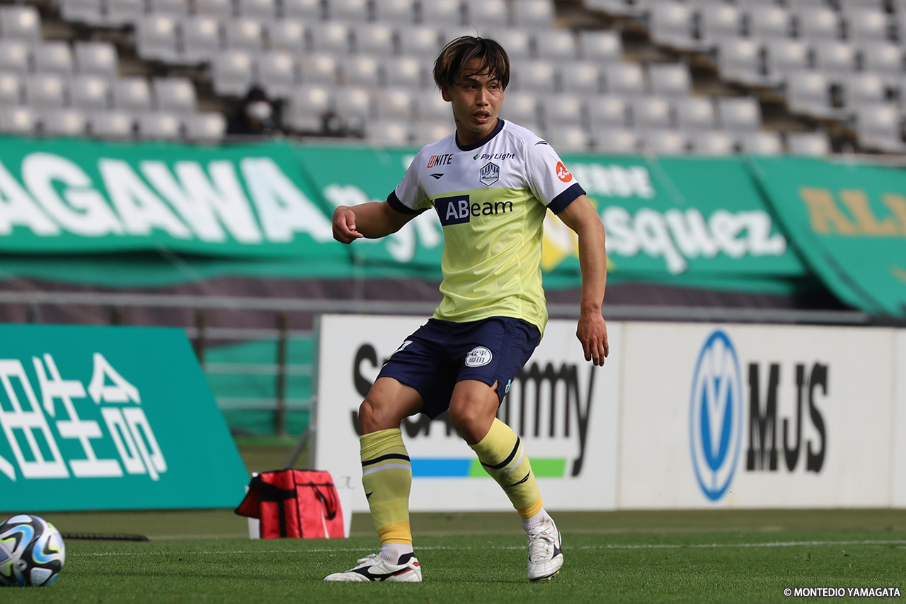 ビハインドの東京Vが後半の立ち上がりから攻撃のベクトルを強める。それに対し、モンテディオは体を張る場面が徐々に増えてくる。応戦する中で、山田と小西がピッチに倒れこむ。小西はプレーに復帰したものの山田は吉田泰授と交代となった。吉田は昨シーズンに特別指定選手としての出場はあったものの、プロになってからはこれが初の出場となった。
