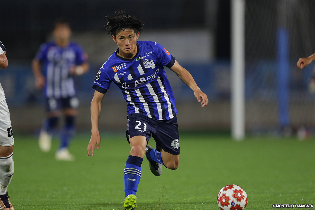 1-0で折り返した後半、モンテディオは熊本から野田裕喜にスイッチし、前半はセンターバック左でプレーしていた西村慧祐は、センターバック右に移った。
