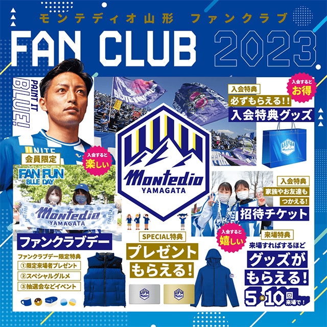 モンテディオ山形では、2023ファンクラブの入会受付を下記の日程、方法で販売を行います。