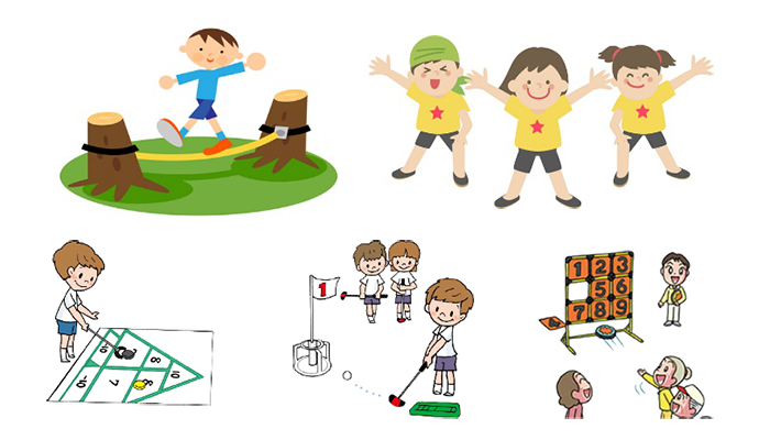 - ・スラックライン体験・モンテキッズダンス体操・シャッフルボード体験・グランドゴルフ体験・フリスビーストラックアウト体験
