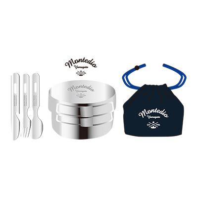 キャンプ、アウトドアに使用可能なランチャーセットと、3コセットの携帯用カトラリー。巾着があるので持ち歩きにも便利。芋煮など入れるのにも最適です!- 素材