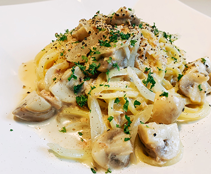 マッシュルーム舟形マッシュルームとツナのクリームパスタ