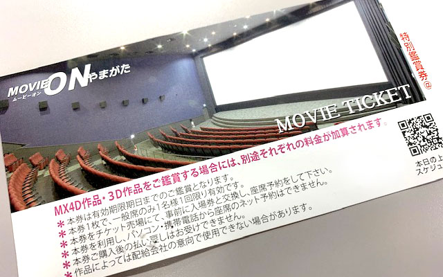 ムービーオン山形の映画鑑賞券3枚付きのチケット[11月1日(日)~30日(月)の期間有効]