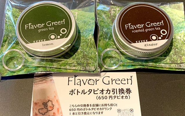 愛媛県産レモンを使用したレモンフレーバー緑茶と高知県産生姜を使用したジンジャーほうじ茶のセットに、山形市上桜田の店舗で使えるボトルタピオカドリンク引換券がついています!