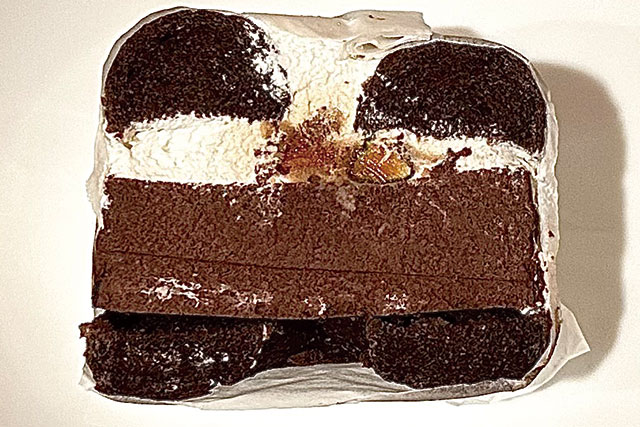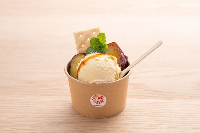 冷凍焼き芋にバニラアイスとカラメルソースをトッピング。