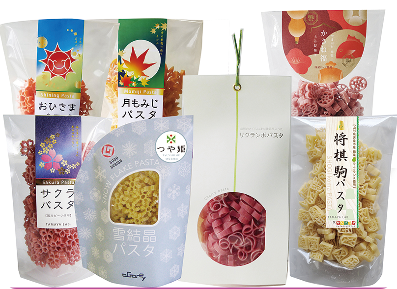 山形生まれの「アート」なパスタを詰め合わせしました。四季を彩る雪・桜・おひさま・紅葉。山形の誇る「さくらんぼ」や天童市の「将棋」や酒田市の「傘福」。目で見て可愛い、おいしい山形の素材入りパスタです。