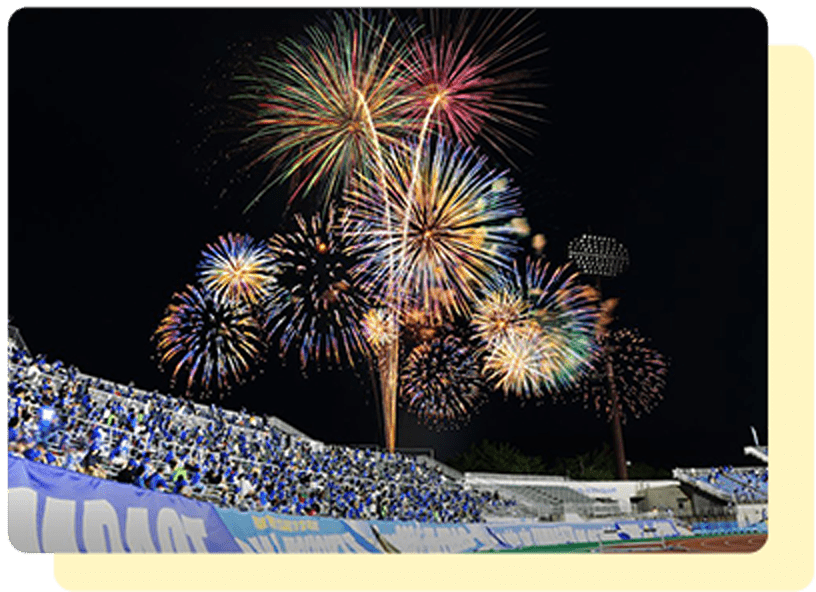 試合終了後に花火を打ち上げます!スタジアムの夜空を彩る花火をお楽しみください。
