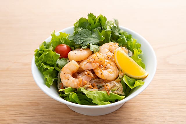 ぷりぷりのエビと春雨の爽やかなタイ風サラダです。