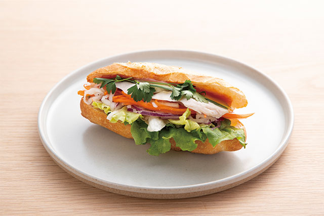 美味しい旬の野菜を生ハムやチーズ、エビやアボカドなどと一緒にたっぷり挟んだ、ボリューム満点のサンドイッチです!紙で包むので、持ちやすく食べやすい!