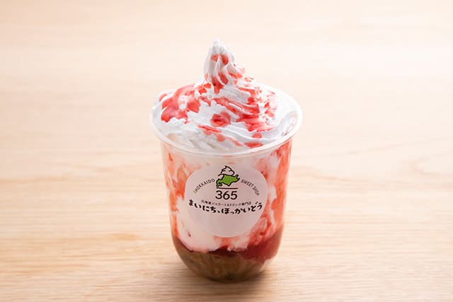 当果樹園で栽培している苺をそのまま冷凍して削り、練乳とホイップをお好みでトッピングしてお召し上がりください。