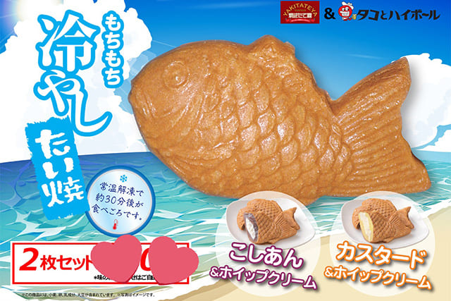 リピーター続出!!ぷっくりとしたお腹に美味しいこしあん&ホイップクリームとカスタード&ホイップクリームたっぷりの冷え冷えたい焼き2種類です!!!