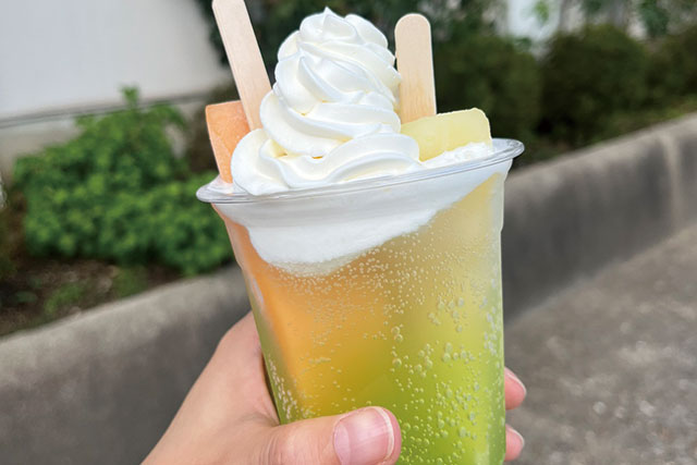 二種類の冷凍メロンステックとホイップで色々びっくりなメロンソーダです!!メロンはもちろん山形県産です!