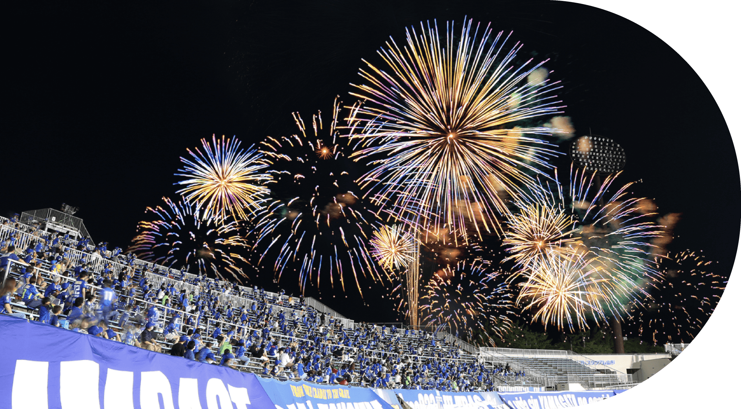 夏の定番!夜空に輝く光の演出遠隔操作機能付きブレスによる「光の演出」花火や選手入場、得点シーンにあわせてカラフルな光でスタジアムを照らします!