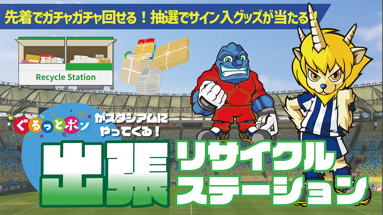 新聞・雑誌・段ボールをスタジアムにお持ち込みの方、先着30名様にガチャガチャ1回分プレゼント!さらに重量がラッキー選手の背番号とピッタリだと…抽選でサイン入りグッズが当たる!