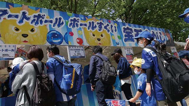 試合終了後、特設駐車場内及び周辺道路はご帰宅の方が集中し大変混雑いたします。中央広場の飲食売店やグッズ売店は、試合終了後一時間ほど営業をしておりますので、時間に余裕のある方は時間差ご帰宅で、混雑緩和にご協力下さい。