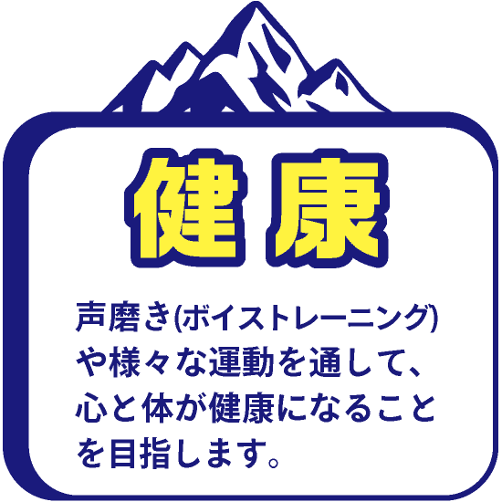 ジュビロ磐田 | 声磨きトレーニング/リハブスタジオ(健康教室) 声/喉を鍛えて健康的に!体を動かして元気に! 発声トレーニングと健康体操を組み合わせたプログラムで、心も体もリフレッシュしませんか? |