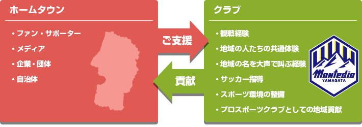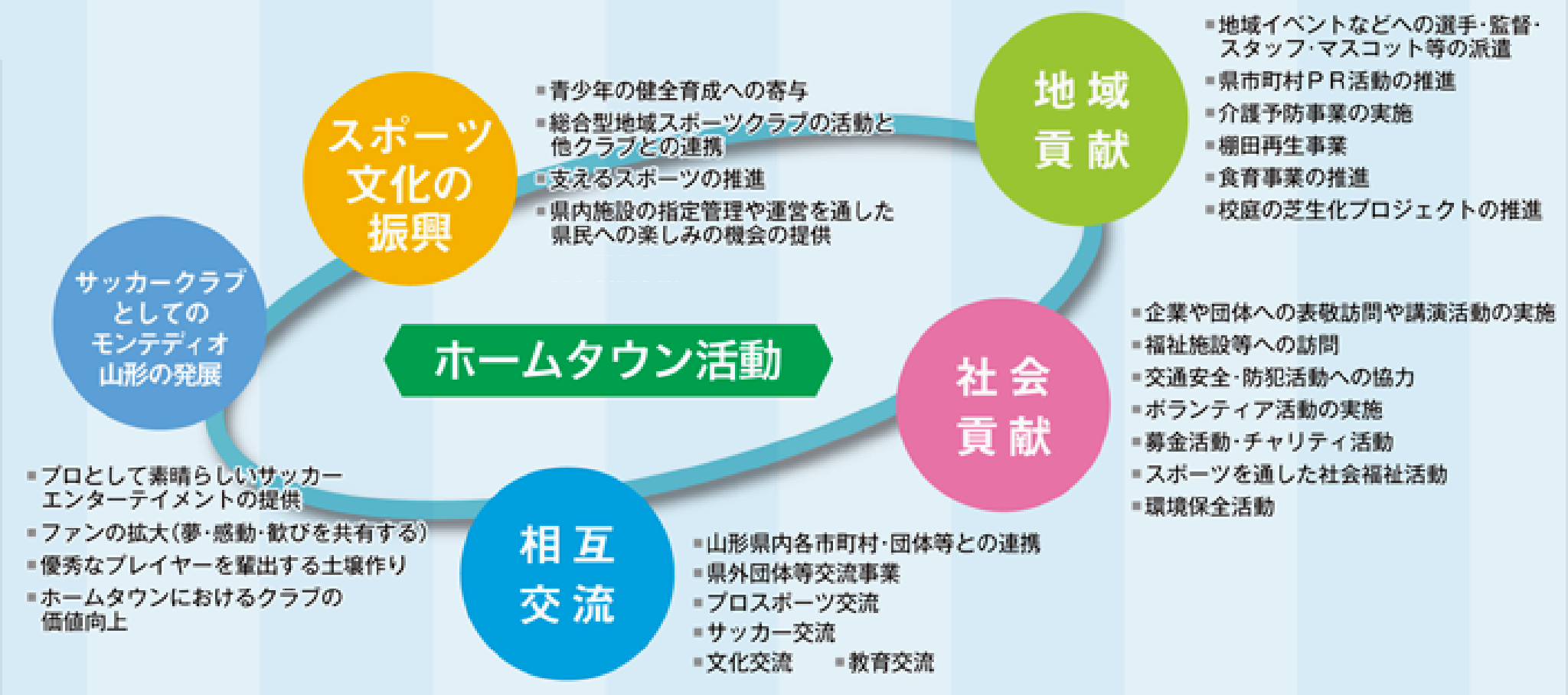 株式会社モンテディオ山形と公益社団法人山形県スポーツ振興21世紀協会はスポーツを通し、山形県内におけるサッカー並びにスポーツの水準向上及び、その普及を促進することで、豊かなスポーツ文化の振興及び山形県民の心身の健全な発達に寄与し、日本、アジア、世界における山形県のステイタスを向上させるために共同で活動していきます。
