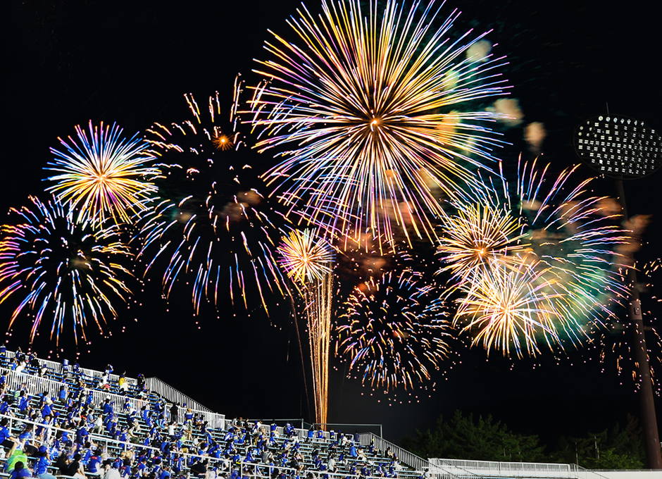 打ち上がる花火をスタンドから家族や友人と眺めながら、スタジアムでのひとときをお楽しみください。
