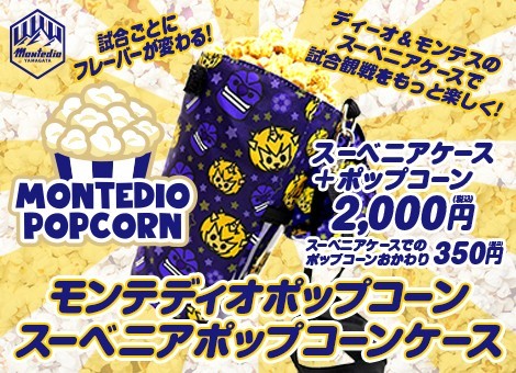 100個限定!スーベニアポップコーンケース販売!ディーオ&モンテスのスーベニアケースで試合観戦をもっと楽しく!プレミアムフレーバーを使用した、濃厚な味と香りをお楽しみください!試合ごとにフレーバーも変わりますよ!