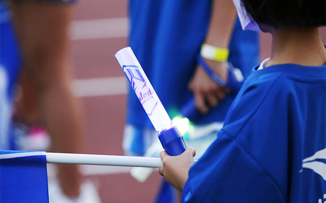 太鼓のリズムに合わせて応援ハリセンを一緒にクラップ!声は出せなくても、大きなで拍手で選手の後押しを!