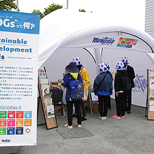 試合開始前には、場外ステージでのトークショーや、スタジアム内でキックインセレモニー、ご挨拶をいただきます。