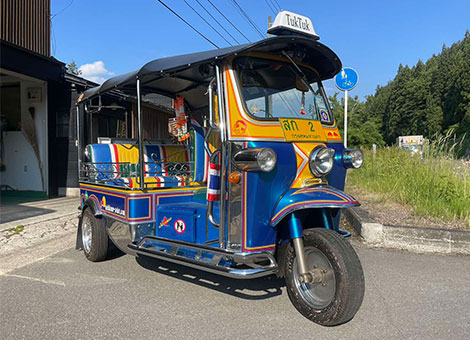 タイや東南アジアでおなじみの三輪タクシー「トゥクトゥク」が、スタジアムに登場!トゥクトゥクに乗って、夜風を感じながら、スタジアム場外を冒険しよう!
