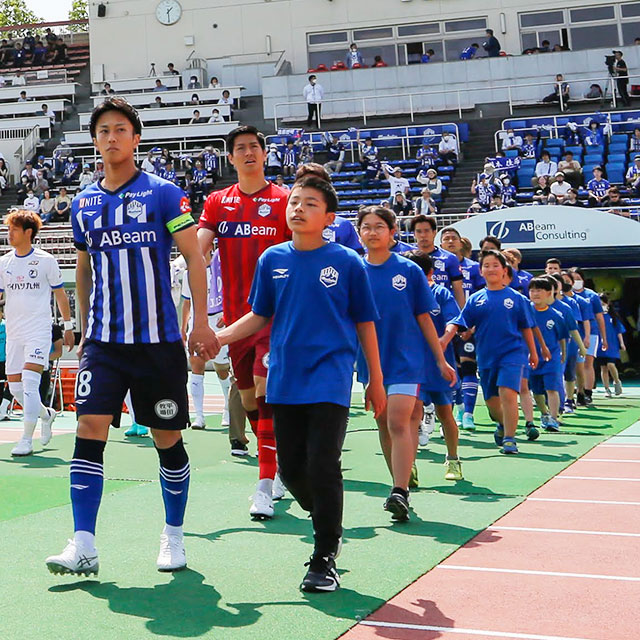入場する選手と手を繋いで入場する小学生1〜6年生の男女を募集いたします。2023選手と一緒に入場してチームを応援しよう!!