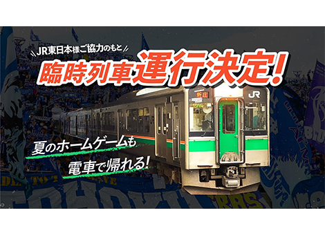 モンテディオ山形では、JR東日本様のご協力のもと、天童南駅発 山形駅行き の臨時列車を運行いたします!夏のモンテディオ山形を十二分にお楽しみいただけるよう、電車をぜひご活用ください!
