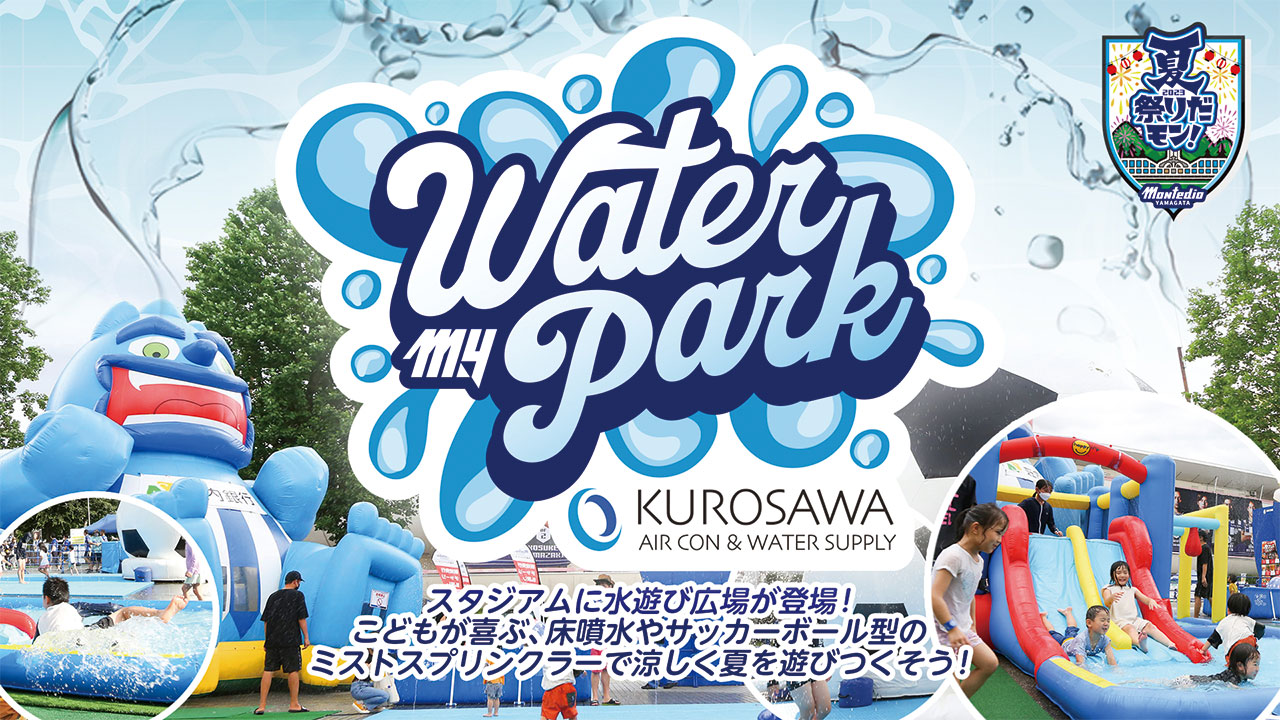 スタジアムに水遊び広場が登場!こども達に大好評の床噴水や20M超大型ウォータースライダーで思いきり遊びつくそう!
