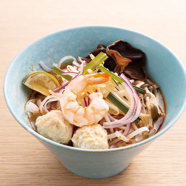 雲ノ糸の煮干し中華のスープをベースに飛魚をプラスした、キッチンカー限定の1杯です。飛魚の風味が自慢のスープと相まって、食欲をそそる一杯に仕上がっています。