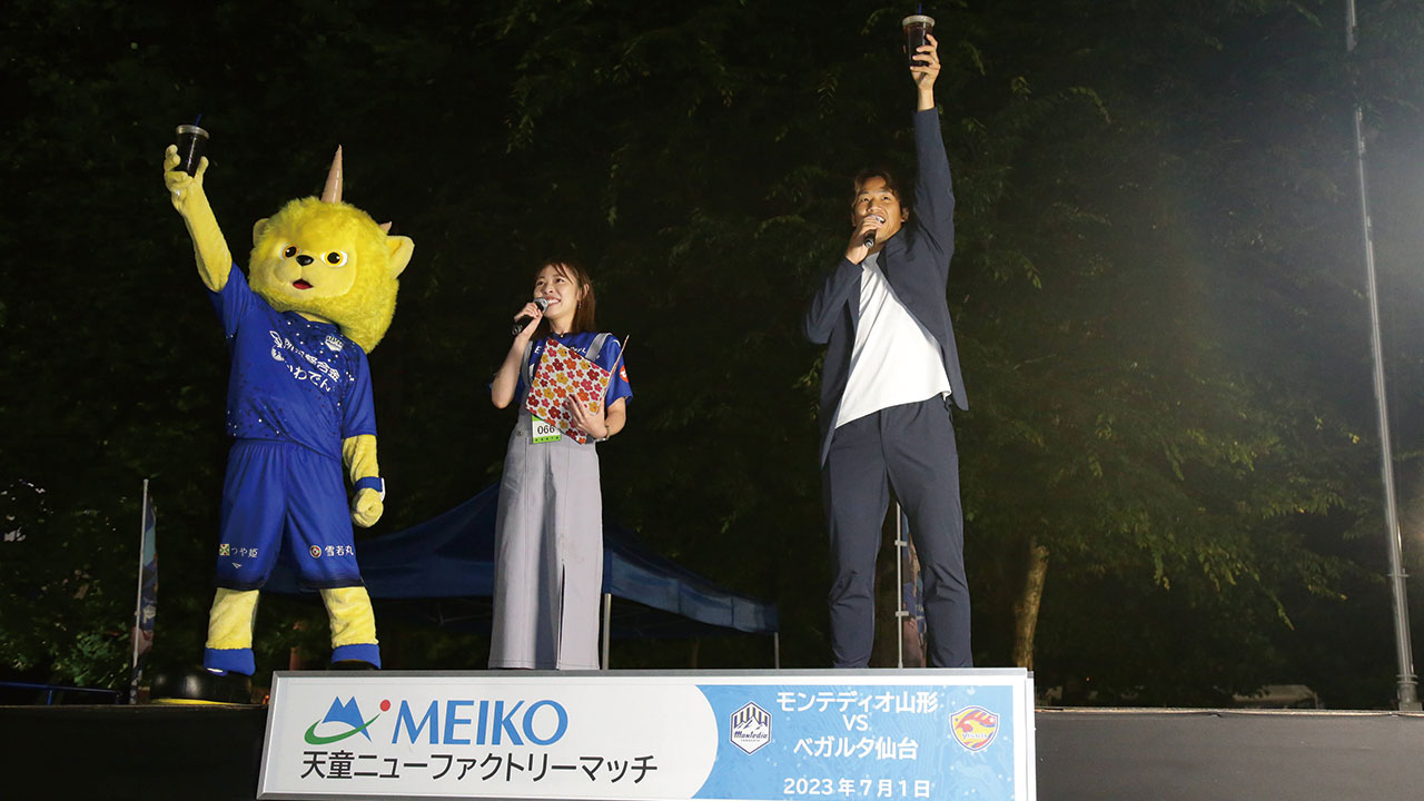 今年もやります!モンテディオ山形勝利時、NDソフトスタジアム山形中央エリアで選手が登場してサポーターの皆さまと一緒に勝利を祝う『勝利の乾杯』!