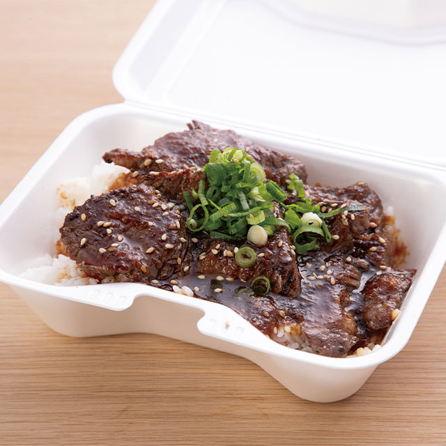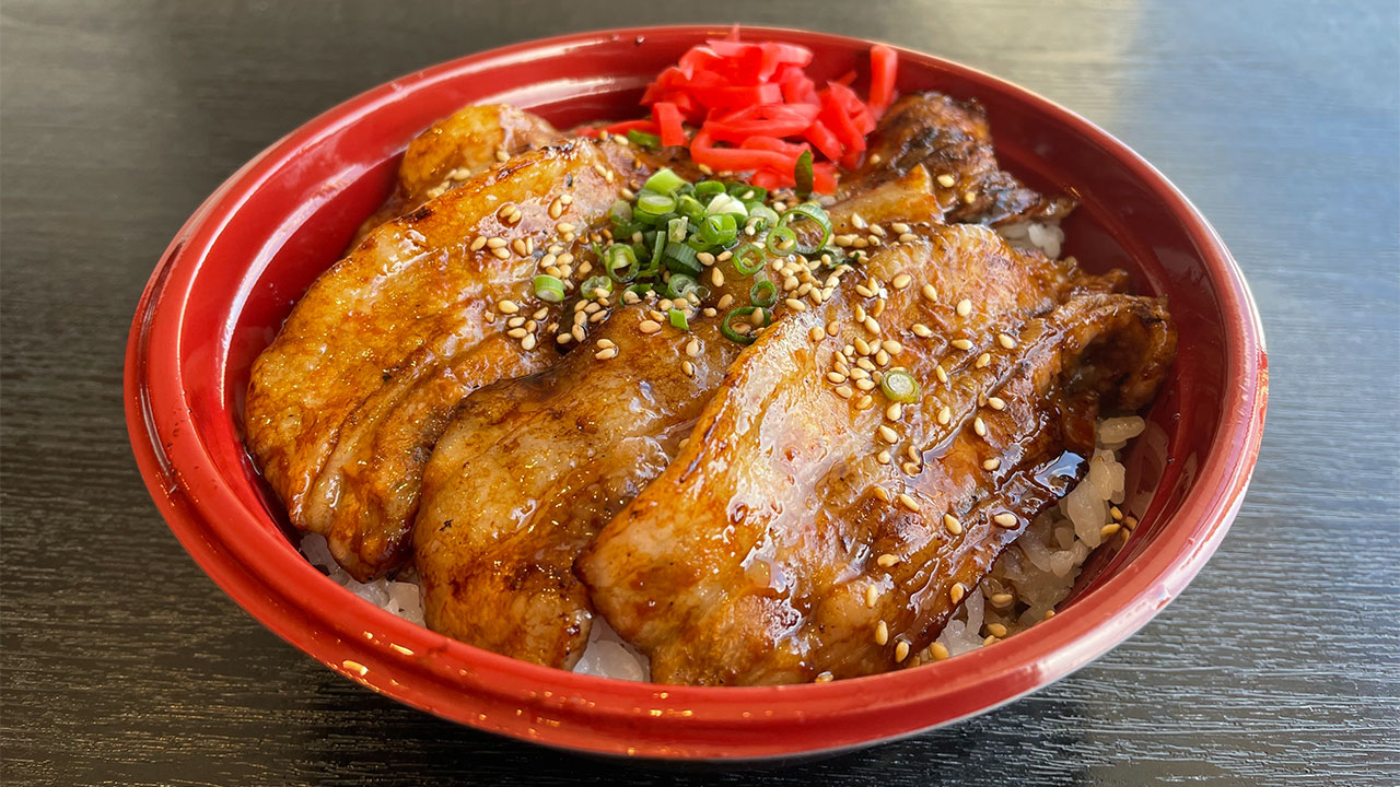 秘伝のたれに漬けた豚肉を焼き上げ、ご飯にのせてがっつりボリュームで提供する。場内に立ち込める香りはもはや「飯テロ」の領域。