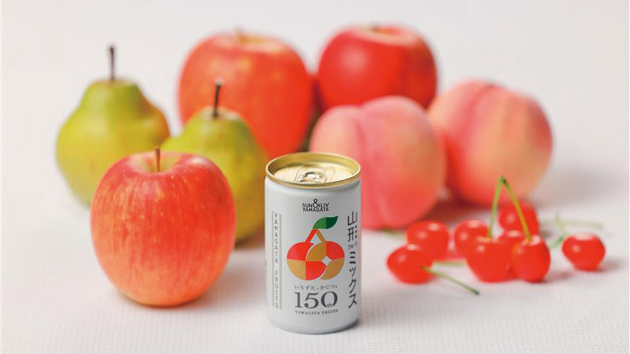 やまがたフルーツ150周年「いちずに、かじつ。」とサン&リブとのタイアップ企画商品。 4種類の果物のおいしさが、仲良く手をつなぐ果汁100%ミックスジュースを先着1,500名様にプレゼント!