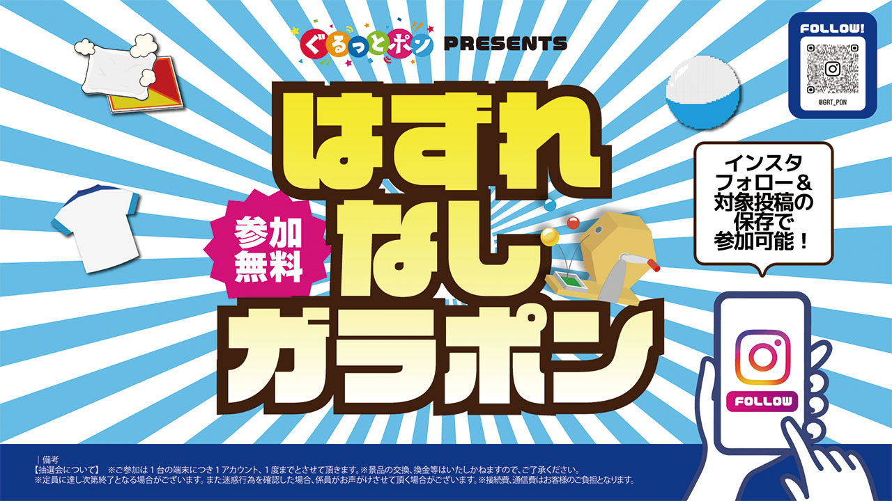 リサイクルでポイ活ができるアプリ「ぐるっとポン」の公式インスタのフォロー&対象の投稿を「保存」をすると、【はずれなしガラポン】に参加できるぞ!