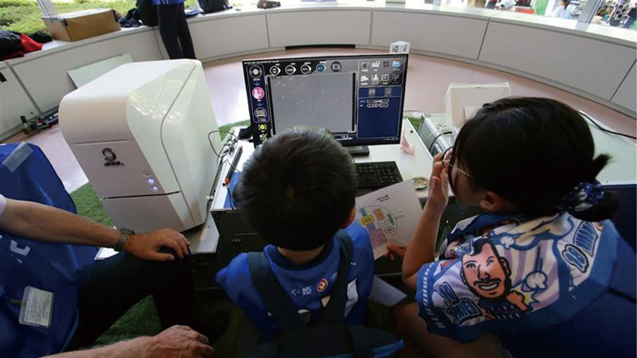 日本電子は今回は昨年も人気を博しました、モンテディオ山形とコラボレーション企画として、モンテディオ山形のユニフォームなどの観察ができる電子顕微鏡操作体験を行います。ユニフォームの他にも、昆虫や花粉、蟻、太陽の砂など。ミクロの世界に飛び込んで、新しい発見を体感しよう!
