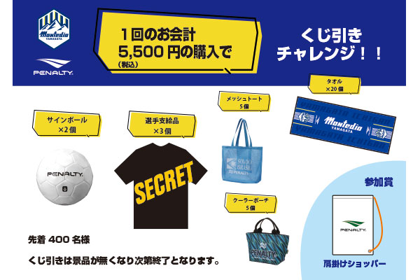 ・プレゼントはモンテディオ山形を応援される方に限ります(「ビジター自由席のチケットをお持ちの方」および「ビジターチームの応援グッズを身に着けた方」は対象外)