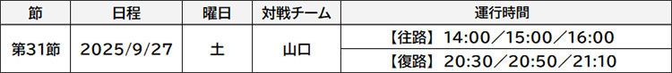 - 各試合によって運行時間が異なりますので予めご確認をお願いいたします。