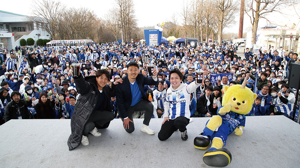 今年もやります!モンテディオ山形勝利時、NDソフトスタジアム山形中央エリアで選手が登場してサポーターの皆さまと一緒に勝利を祝う『勝利の乾杯』!