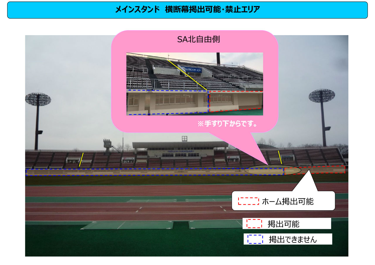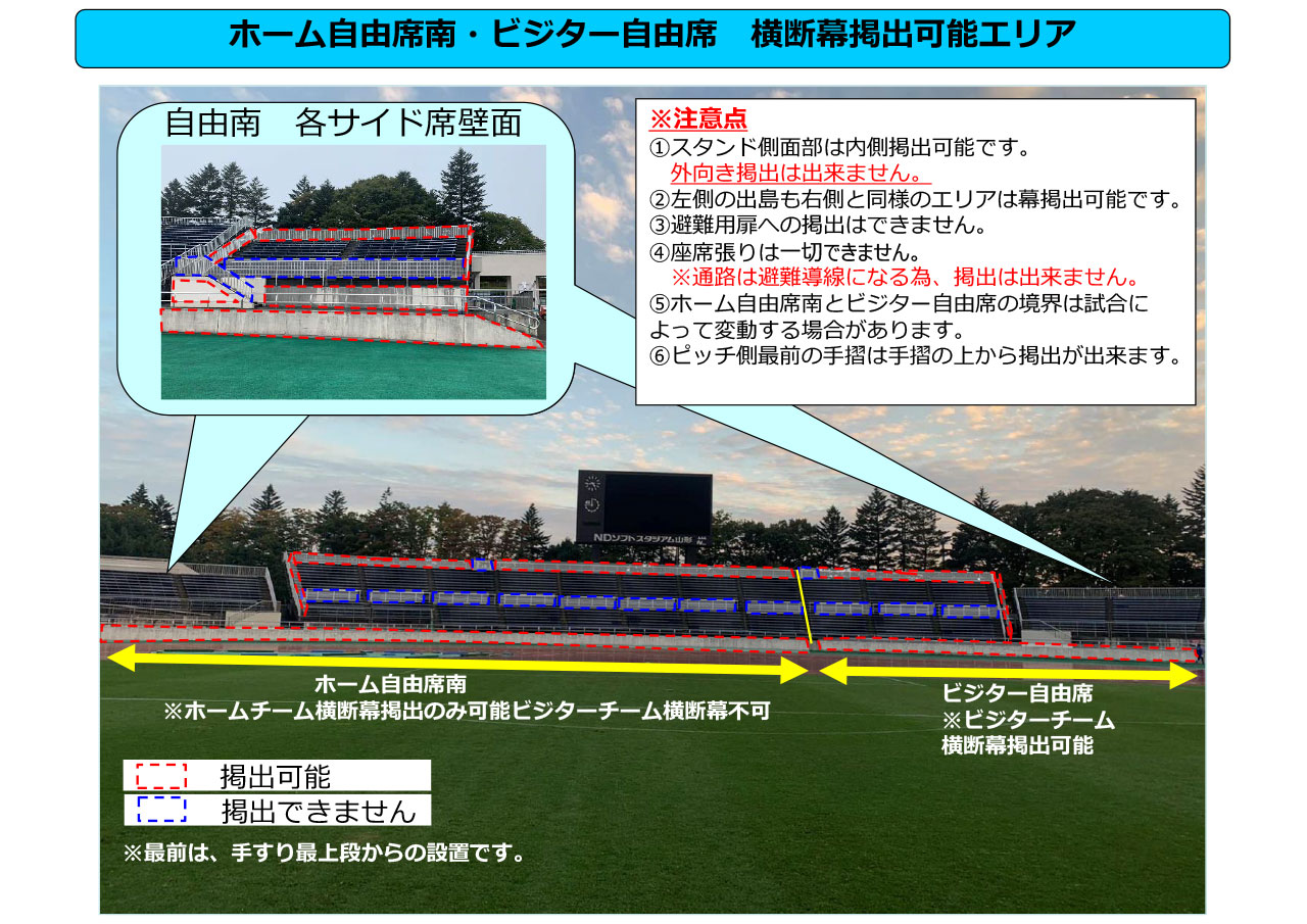 - モンテディオ山形の応援幕すべてが事前掲出いただけます。