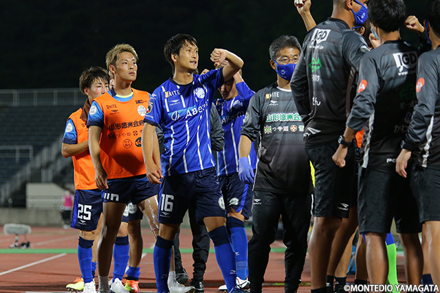 交代なしでスタートした後半も、モンテディオはサイドで起点を作りながら主導権を握り、渡邊選手のミドルシュートや、山田選手がフリーでクロスを上げるなど追加点を狙った。