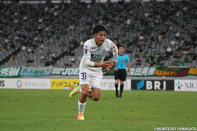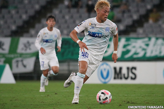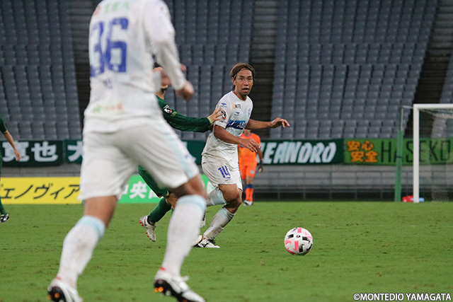 モンテディオ山形の先発メンバーの入れ替えは前節から二人。末吉塁選手に代わって小野田将人選手が開幕戦以来の先発に入り、左のワイドでプレー。ここまで左ワイドでのプレーが多い山田拓巳選手は右のワイドに回った。また、シャドーには渡邊凌磨選手が2試合ぶりに戻った。