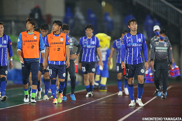 土壇場で追う展開となったモンテディオは、山田選手、末吉選手に代えて三鬼海選手、高橋潤哉選手を投入。南選手が中盤でシンプルにさばく展開や、中村駿選手のクロスのこぼれ球からシュートを狙うシーンを作ったが、最後までゴールを割れなかった。
