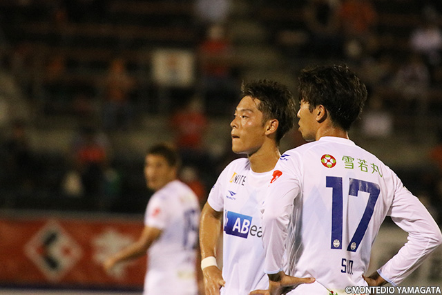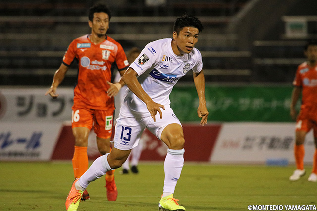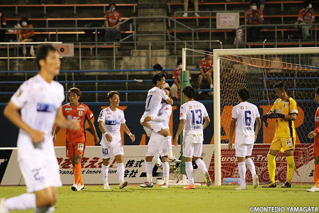 8試合勝利がないモンテディオ山形と、7試合勝利がない愛媛。19位と20位の対戦は前半、山岸祐也選手の2試合連続のゴールでモンテディオが先制。この1点を最後まで守りきり、9試合ぶりの勝利を飾った。