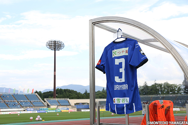 引き続き4-4-2のフォーメーションとなるモンテディオは前節から3人を交代して臨んだ。試合開始前には栗山直樹選手の長期離脱のリリースが発表され、ベンチには背番号3のユニフォームが飾られた。