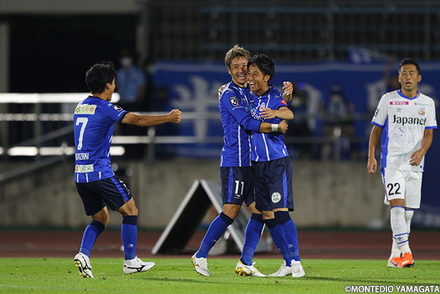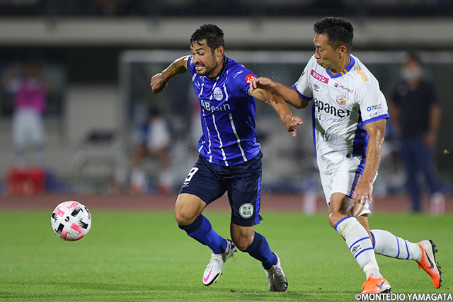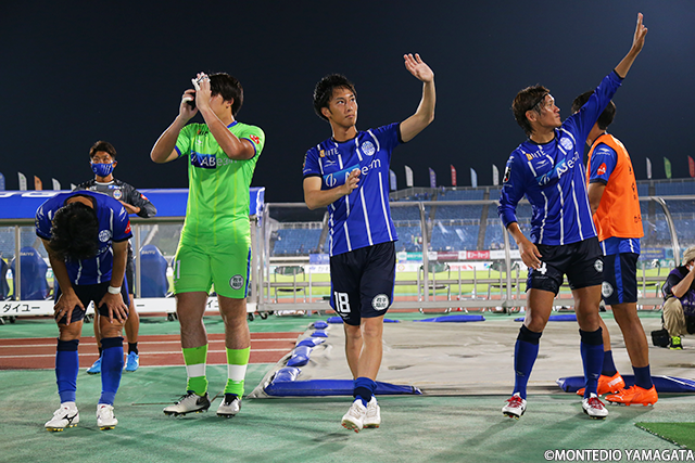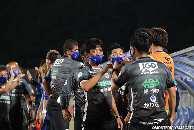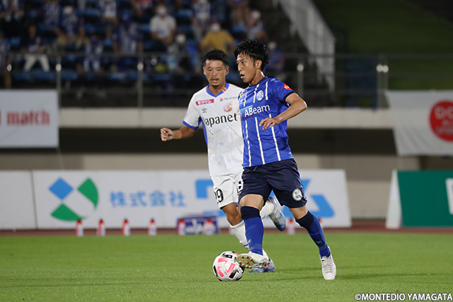 前節9試合ぶりの勝利を挙げ、ホームに戻ってきたモンテディオ山形は、首位・長崎と対戦。後半開始早々に南秀仁選手のゴールで先制すると、その後も長崎の攻撃を水際でしのぎきり、2試合連続の1-0で今季初の連勝を達成した。