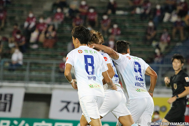 5試合勝利なしで迎えたシーズン前半の最終戦、アウェイでファジアーノ岡山と対戦したモンテディオ山形は、後半にセットプレーで先制を許し、一時追いついたものの、アディショナルタイムにPKを決められ、1-2で競り負けた。