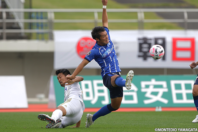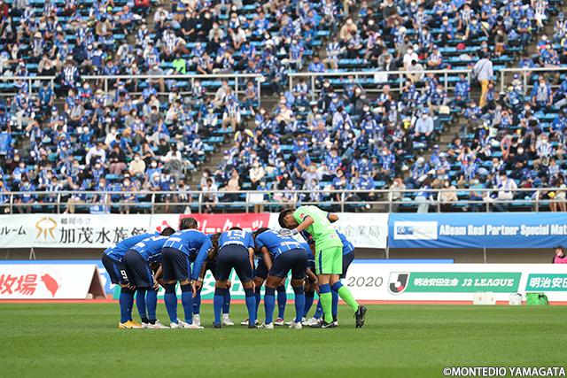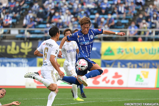 観客の入場制限がさらに緩和され、1万人まで入場可能となった今節、5,435人の観客の前で今季初の3連勝に挑戦したホーム・松本山雅FC戦。モンテディオ山形は前半を0-0で折り返しながら後半に3失点すると、得点も1点にとどまり、前回対戦のリベンジもならなかった。